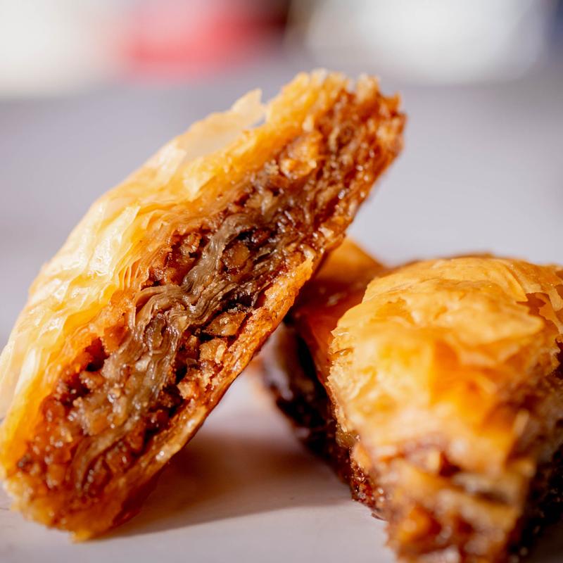 A Baklava like dessert, made with Kantaifi, consisting of thin strands of shredded Phyllo dough